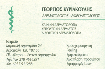 Κλινική και Ασθητική Δερματολογία - Χειρουργική ΔέρματοςΔέχεται καθημερινά 17:00 -21:00 και Τετάρτη 10:00 -13:00
